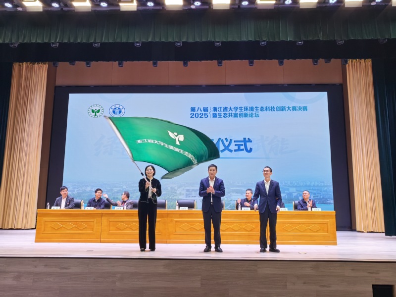 在大赛闭幕式上,我校副校长余丹作为下一届赛事承办单位代表,郑重接过赛旗。她在致辞中表示,浙江万里学院将以高度的责任感与使命感,全力推进第九届赛事的筹备工作,从赛事组织、学术交流到服务保障等各环节精益求精,力争将下一届大赛办成“有思想高度、有创新力度、有情感温度”的生态创新盛会,为全省高校环境生态领域人才培养与学术交流搭建更高质量的平台。