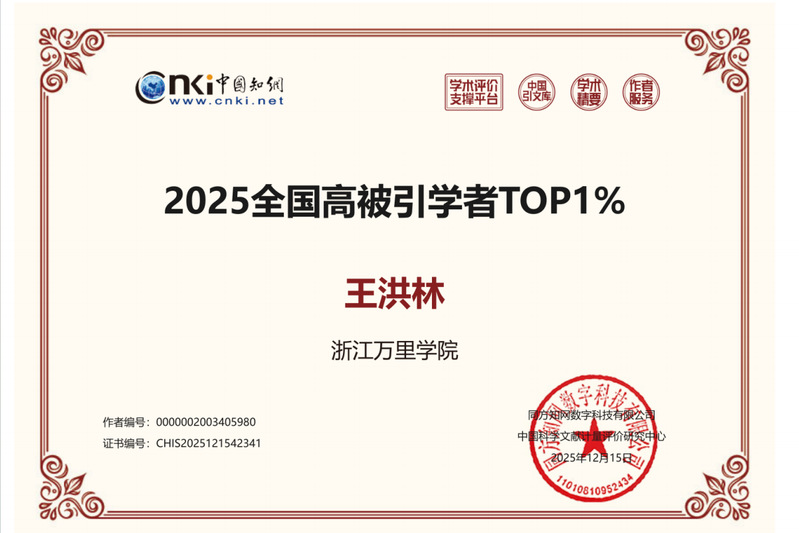 近日,中国知网下属的中国科学文献计量评价研究中心正式发布了“2025全国高被引学者”名单。外语学院王洪林教授荣登榜单,继2024年之后再度成功入选“2025全国高被引学者TOP1%”。