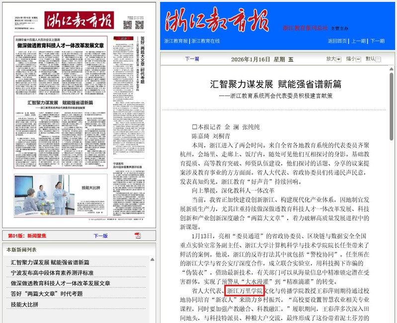 《浙江教育报》汇智聚力谋发展 赋能强省谱新篇 ——浙江教育系统两会代表委员积极建言献策